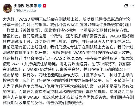 明日上线测试 ! 《英雄联盟》总监公布WASD操作方式平衡方案【暗区突围透视挂免费下载】